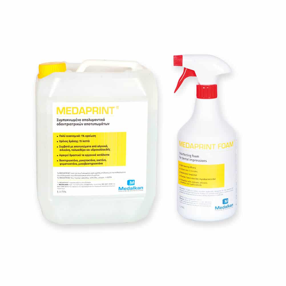 Το MEDAPRINT FOAM είναι ένα συμπυκνωμένο διάλυμα καθαρισμού και απολύμανσης των οδοντριατρικών αποτυπωμάτων. Η μορφή του σε αφρό επιτρέπει μια ευκολότερη χρήση και καλύτερη ακρίβεια στην εφαρμογή.