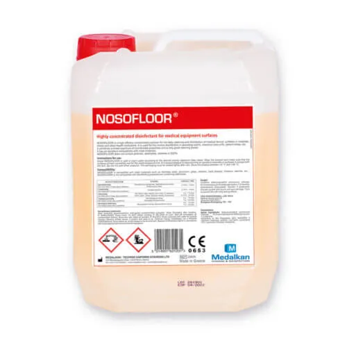 NOSOFLOOR is a high efficacy concentrated surface disinfectant for the cleaning and disinfection of hard surfaces as walls, floors, toilet bowls, door handles, etc. It combines a broad spectrum of microbicidal properties and a very good cleaning power.